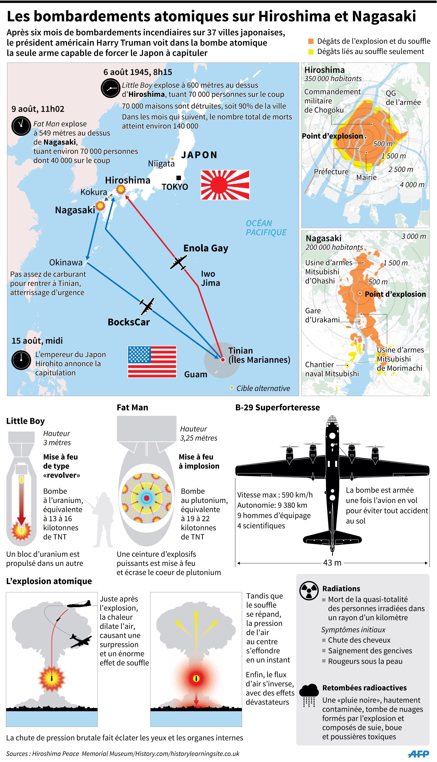 56 % des Américains estiment que l’utilisation de l’arme atomique contre le Japon était justifiée, alors que 79 % des Japonais jugent qu’elle ne l’était pas.
