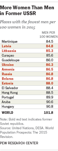 En revanche, le rapport aux États-Unis est de 98,3 hommes pour 100 femmes, et le ratio global est de 101,8 hommes pour 100 femmes, selon les données 2015 des Nations Unies. Les États-Unis avait plus de femmes que d’hommes depuis au moins 1950, alors que la population mondiale était à majorité masculine autour de 1960.