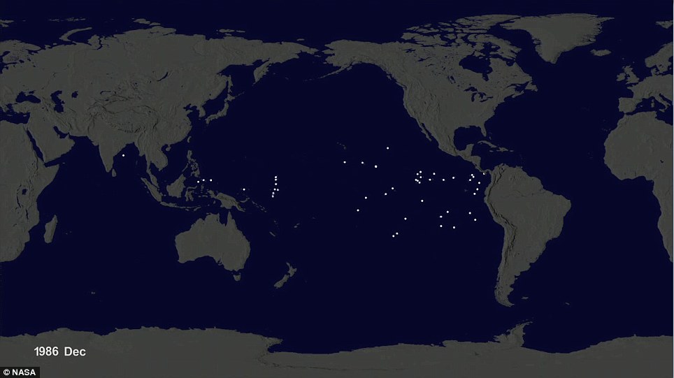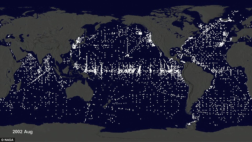 La NASA a créé ce time-lapse en utilisant des données provenant des bouées (vus comme des points blancs) mises en place dans les océans depuis 35 ans.
