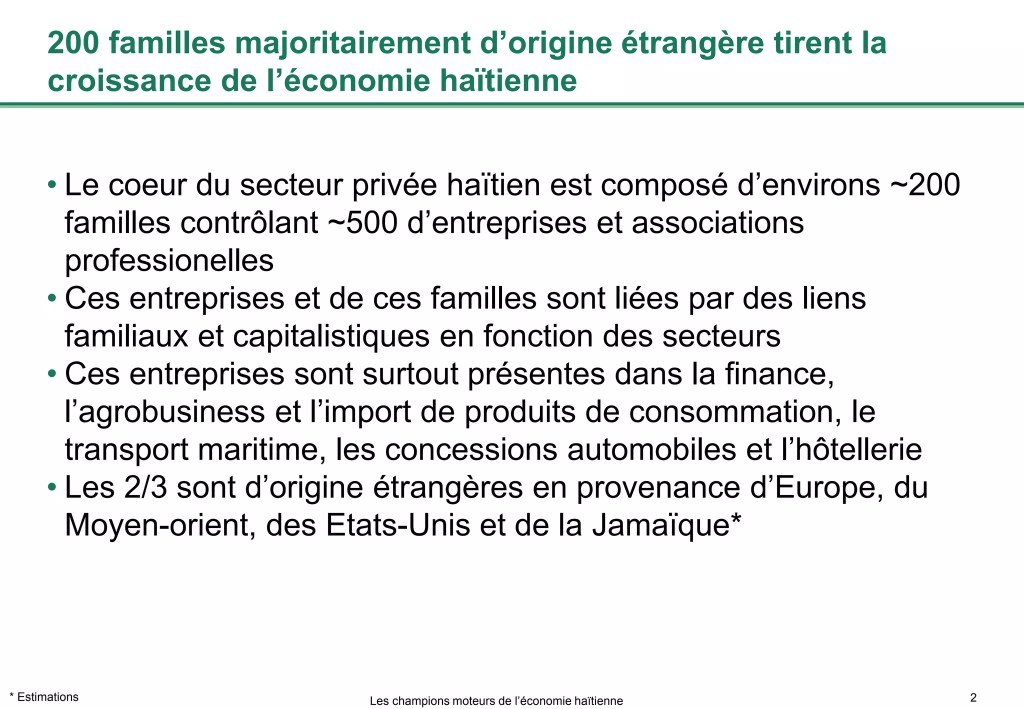 Peu connu du grand public, pourtant Haïti est un pays riche en ressources naturelles. Certains pensent qu’il ne faut surtout pas développer cette industrie pour des raisons écologiques (c’est étrange car, quand il fallait developper l’occident, l’Amérique, cela ne semblait pas poser les mêmes problèmes). D’autres sont très certainement déjà sur les rangs pour en tirer un bénéfice personnel.