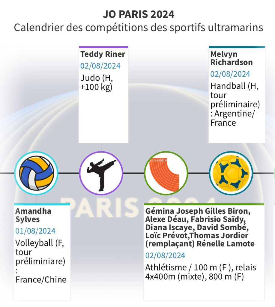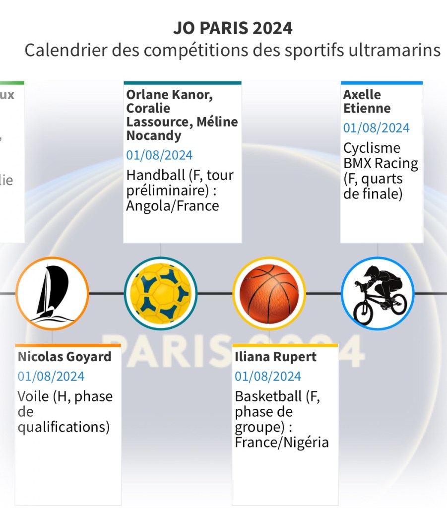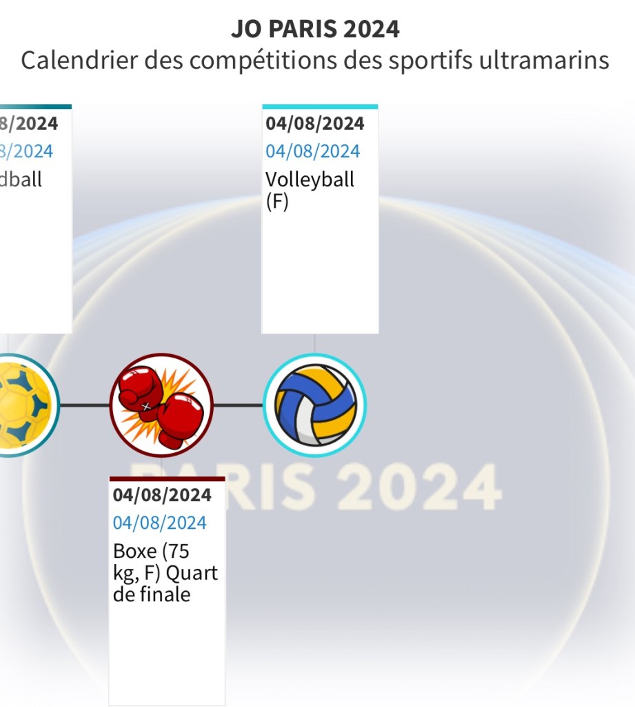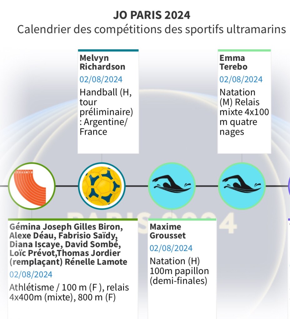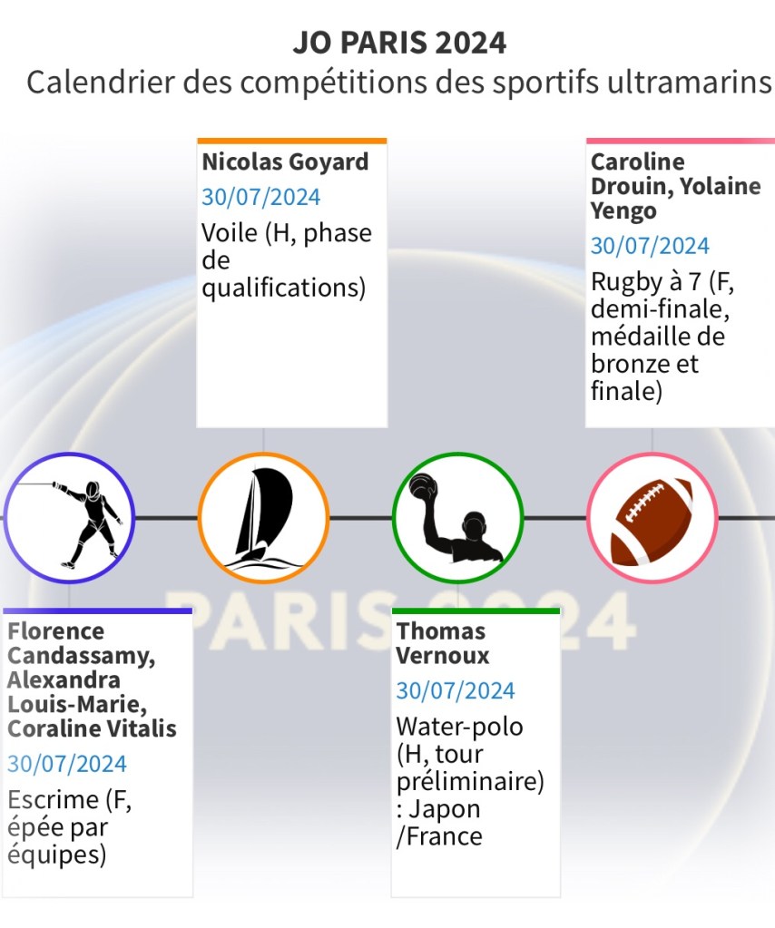Pour vous permettre de ne rien rater de ces rendez-vous et encourager les Ultramarins, nous vous proposons ce calendrier hebdomadaire consultable aussi en plein écran. Il vous permettra de suivre au plus près les performances de nos sportifs et de les encourager au quotidien.
