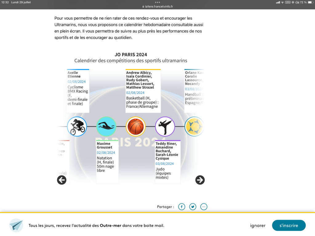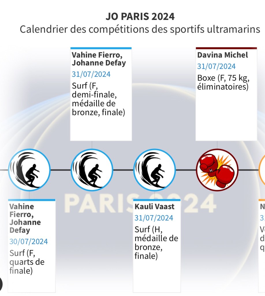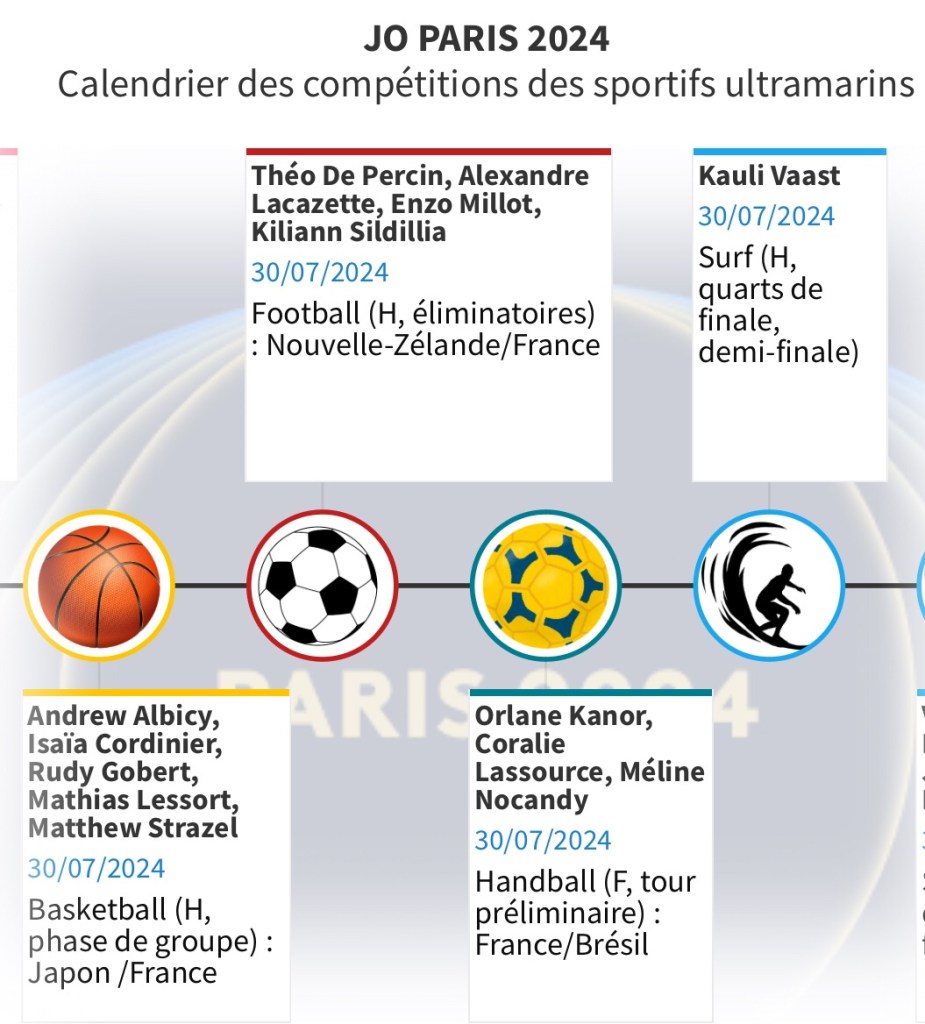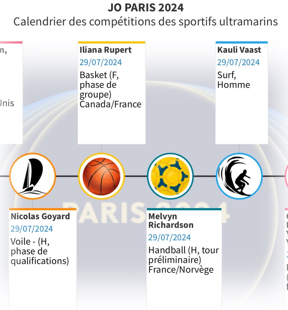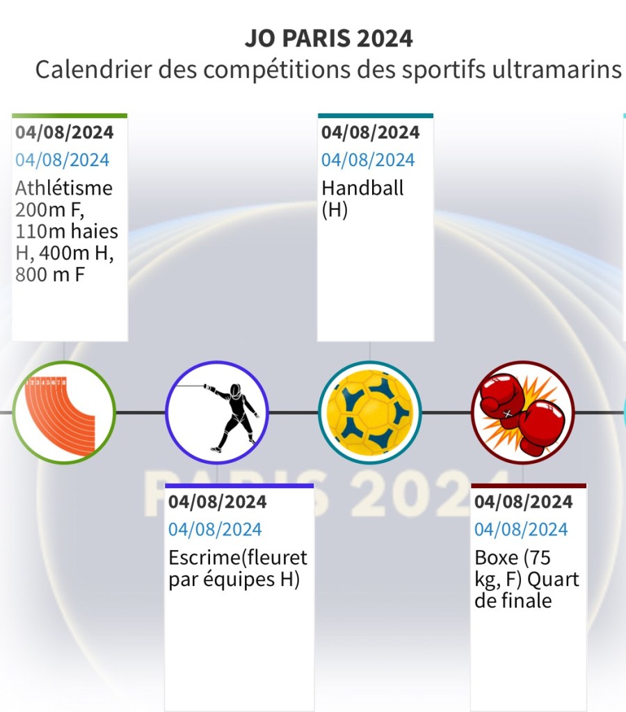 Pour vous permettre de ne rien rater de ces rendez-vous et encourager les Ultramarins, nous vous proposons ce calendrier hebdomadaire consultable aussi en plein écran. Il vous permettra de suivre au plus près les performances de nos sportifs et de les encourager au quotidien.